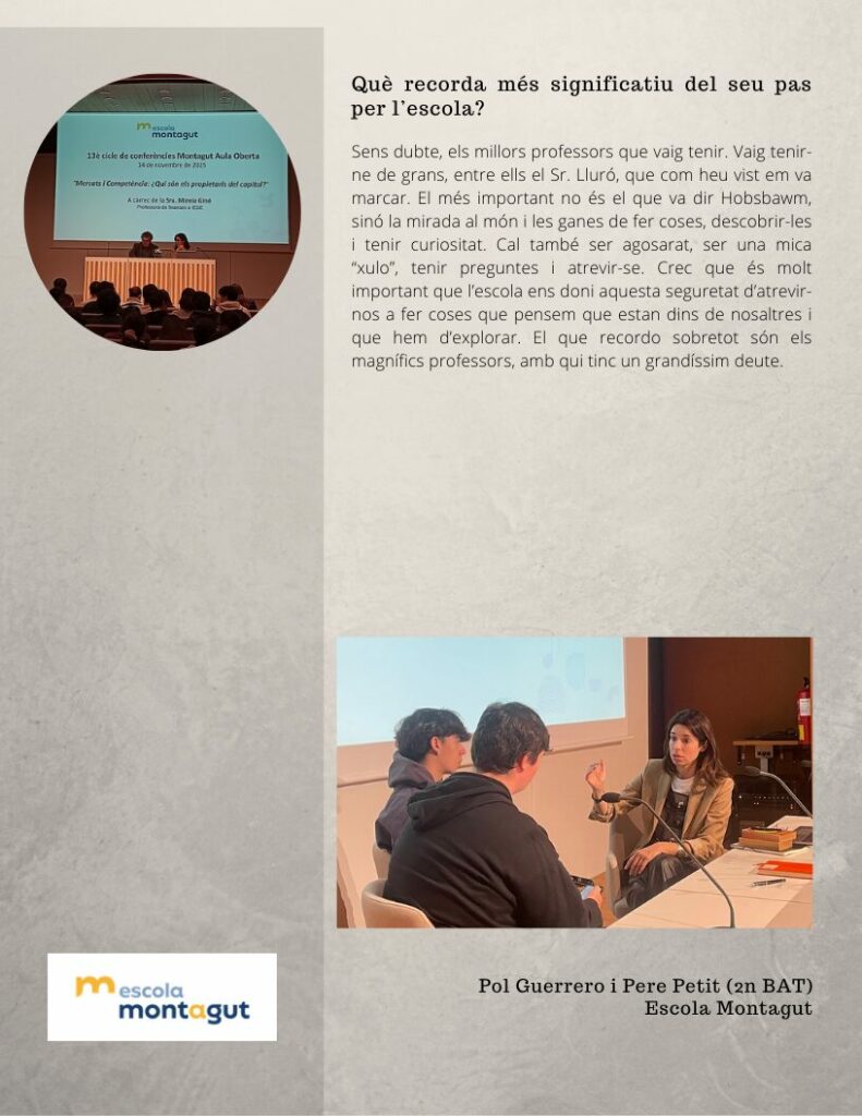 L’entrevista ha estat realitzada pel Pol Guerrero i el Pere Petit, alumnes de 2n de Batxillerat.